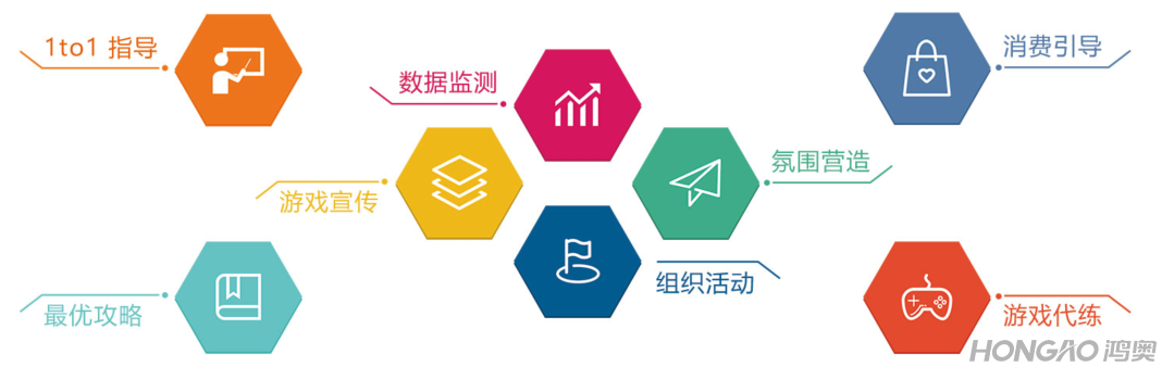 GS(Game Sales)服务是指通过社群营销,构建游戏内外的社交关系,活跃游戏氛围,平衡游戏内玩家实力,以达到提升用户留存、拉升用户消费的目的,从而让厂商的利收益最大化。
