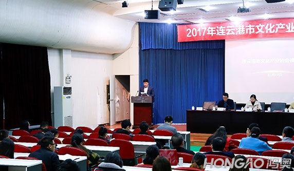 第四项议程是新一任会长,江苏鸿奥科技有限公司董事长祁大庆做就了职发言,他指出连云港市文化产业协会是市场经济发展的需要,是助推我市文化产业发展的需要,也是社会发展进步的需要并简要报告了一下下一步的工作思路: