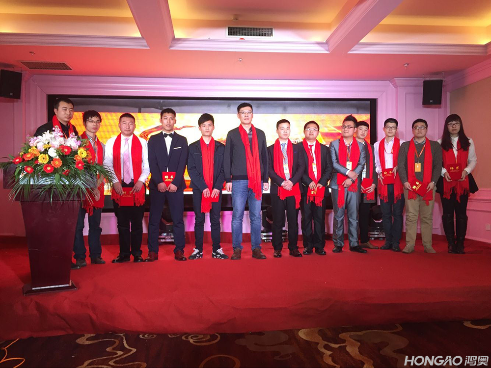 年会上灯光璀璨、觥筹交错、宾朋满座。全体员工热情高涨,节目、就餐、致辞、颁奖交叉进行。董事长祁大庆先生、总经理单田清先生与全体鸿奥达人携手共欢,给到场的嘉宾朋友和全体员工带来了一场精彩纷呈,热闹非凡的年会!
