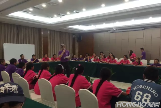 紧接着由香港梁嫣红团队为孩子们上一堂心理课程,为孩子们准备了一些团队小游戏,有“找朋友”,“我是谁”等,这样的团队活动既能让孩子们正确的认识自己,又能够实事求是的评价自己,也能在学习生活中寻找适合自己的方面,产生自我调节和人格完善的意识。结束后,梁嫣红团队又进行了孩子们的营前调查及结构式访谈来了解学生们的需求,爱好,困惑,以作出相应的引导方案。这里要感谢梁嫣红社团队的伙伴们给孩子们的关爱。