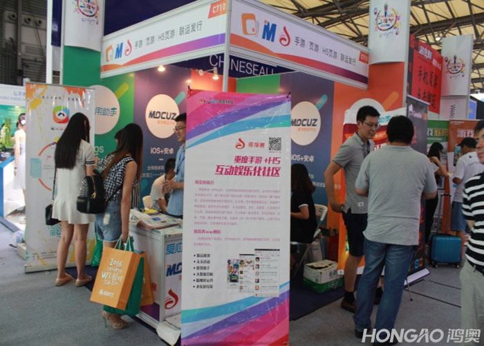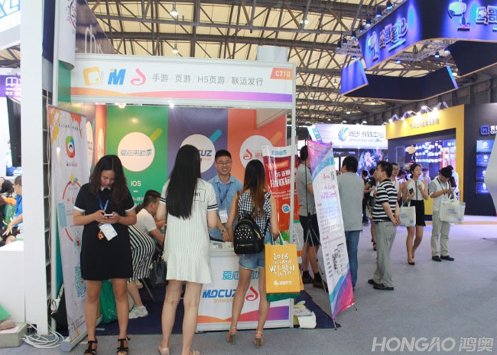 鸿奥科技的展台位于2016 ChinaJoy C馆710展区。在本次ChinaJoy展会上,鸿奥联合兄弟公司南京魔苹网络科技有限公司一起开展,展台吸引了不少游戏公司的商务慕名而来,交流结识。本公司领导、高层都参与了展会,充分展现了对ChinaJoy的重视。公司本次参展的产品有:43u网页游戏有:43u网页游戏运营平台、多米玩手机h5游戏平台、和拇指客安卓游戏APP。