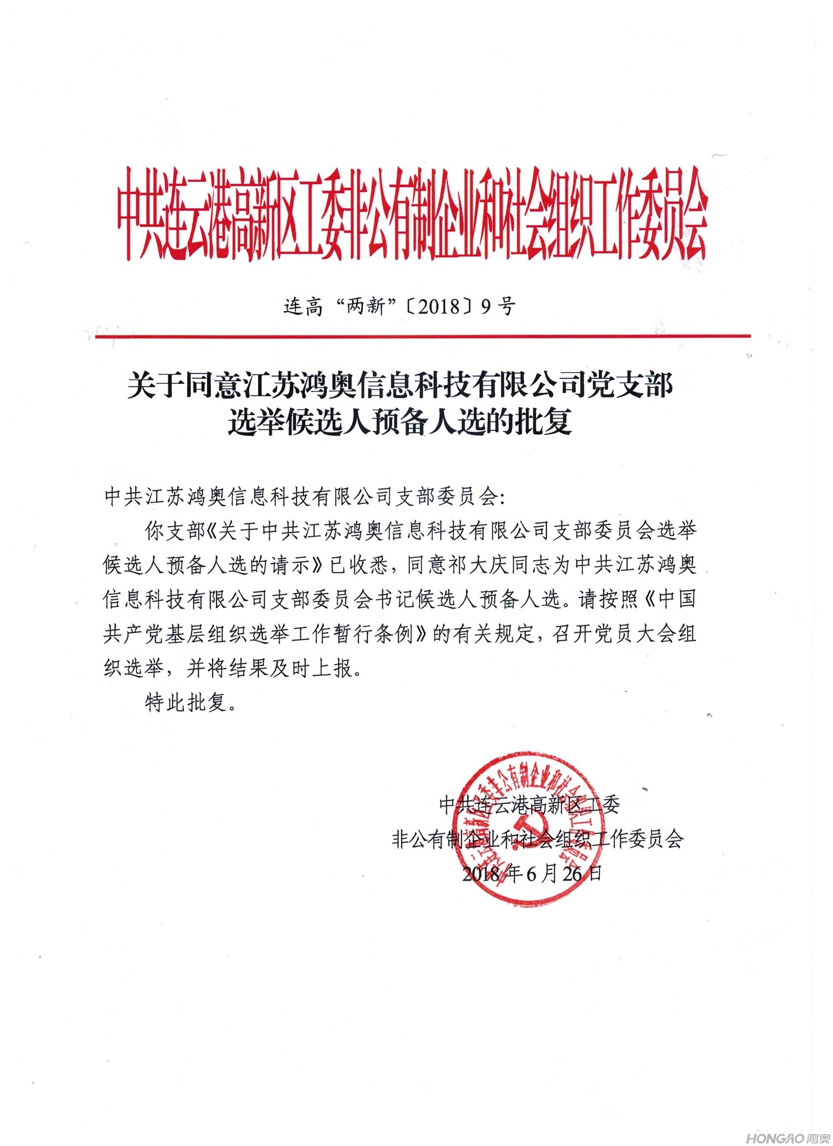 中国共产党是中国工人段级的先锋队,是中国人民和中华民族的先锋队,是中国特色社会主义的先锋队,代表着中国先进生产力的发展要求,代表中国先进文化的前进方向,代表中国最广大人民的根本利益。近日,经中共连云港高新区工委非公有制企业和社会组织工作委员会批复同意,中国共产党江苏鸿奥信息科技有限公司支部委员会正式成立。