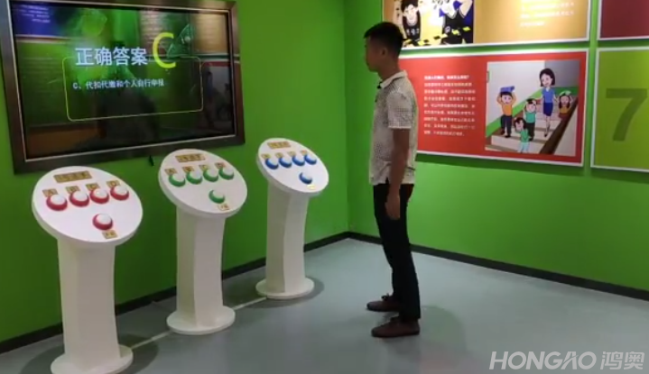 系统利用计算机软件、投影仪(显示屏)共同组建完成,紧张快速的抢答互动环节,给体验者带来更加生动深刻的学习记忆效应