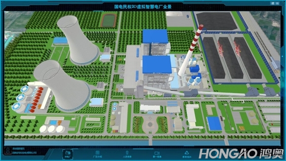 缩进全景三维数字模型采用3D可视化技术将全厂建筑与设备虚拟化,包含:升压站、汽机房、集控楼、锅炉房、脱硫塔、煤场等全部区域的全部设备,对电厂各系统和设备的外观、工艺流