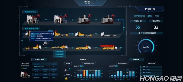 通过三维仿真技术对实景高度还原使用3D数字可视化对智能工厂建筑、车间结构、设施设备等进行3D建模,直观、真实、精确地展示各种设施、设备形状及生产工艺的组织关系,设施、设备的分布和运作情况,使用户在电脑上就可以浏览整个工业现场,如同亲临现场。同时系统将设备三维模型与设备基础数据绑定在一起,实现设备在3D可视化场景中的快速定位与信息查询。